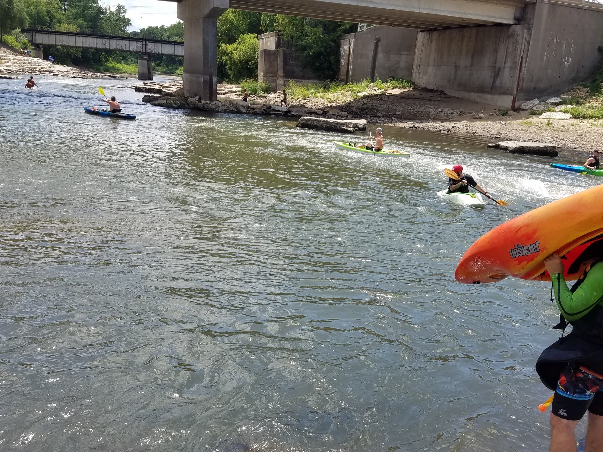Last Sunday we took a trip with some friends on the Maquoketa River. We started out in the white water park, where the guys attempted to navigate the course through the rough waters.