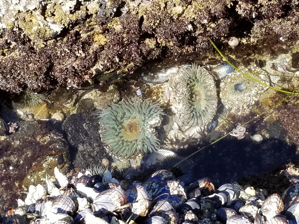 When Cory was at work, we stole his truck and drove to Dana Point. We hiked along the cliffs and boulders for quite a while, stopping to look at different sea life in the shallow water. We found some sort of sea life in the water that would fold in on itself. We called them sea urchins, but I have no idea what they really area. Comment below if you know! They were squishy but had a rock like exterior when it was folded up. The picture I took had 3 of them and it illustrates the progression pretty well.