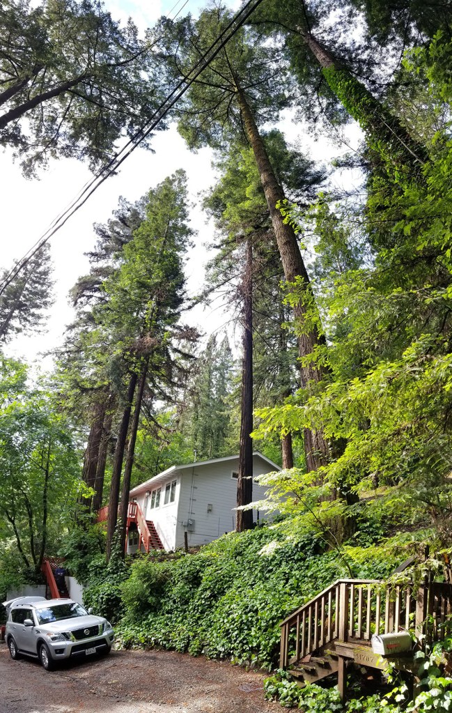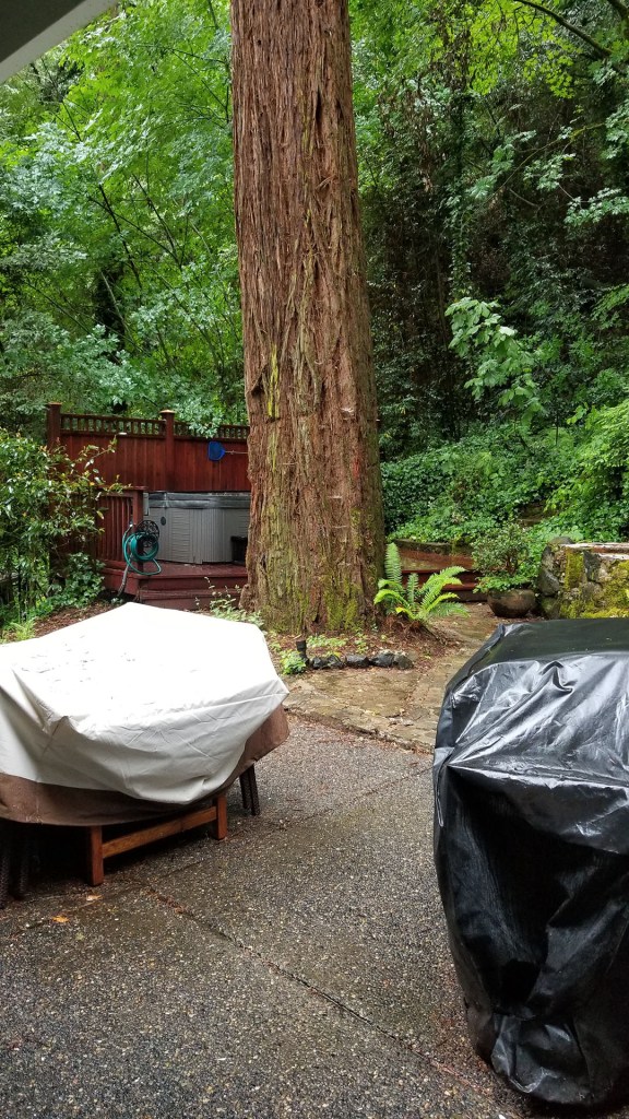 We started things out in California by crawling in our rental vehicle, a brand new Nissan Armada with just 7 miles on it. We drove it across San Francisco, over the gorgeous Golden Gate Bridge, through wine country, where we picked up some groceries and some In-N-Out Burgers, and headed right into the Redwood Forest to the town of Guerneville. We trekked up a windy road and parked our brand new chariot in the only spot that we could still get out and not ding the doors. The house we stayed in had redwoods all around it. The deck overlooked the valley below and the back patio had a redwood growing out of the middle of it complemented by a hot tub.