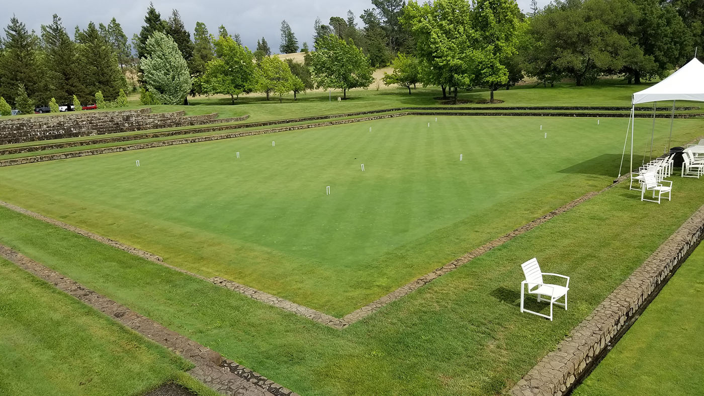 On our way to Sonoma-Cutrer, we stopped at the Martin Ray winery. This place had the best wine in my opinion. I’m not a big wine drinker, so I’m not sure what made it good, but I really liked it. We sat and sampled wine and chatted up the gentleman serving us. The rain seemed to let up a bit, so we went exploring around the beautiful property. I guess they used to have chickens all around there, and it was sort of part of their trademark, but when we were they the chickens were gone. We did find the bocce court and played for a while as we drank from a bottle that we purchased. It was the only time we purchased a bottle after tasting… I told you, it was good!