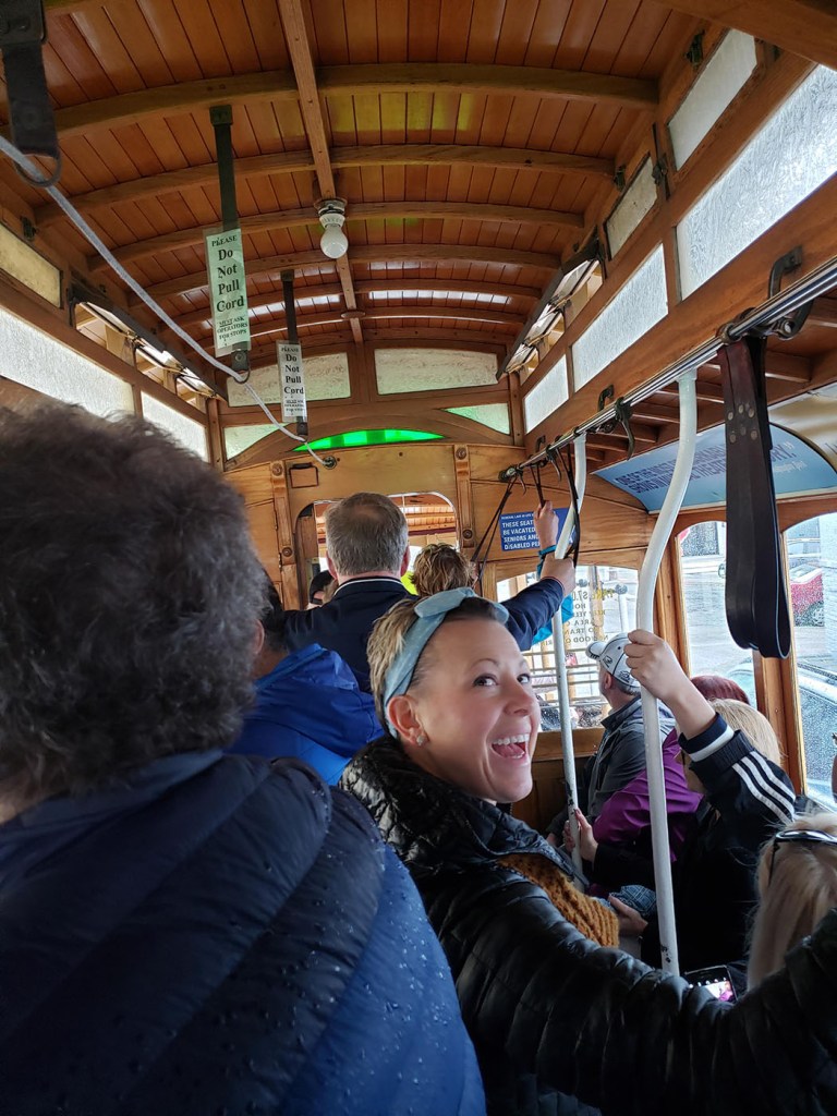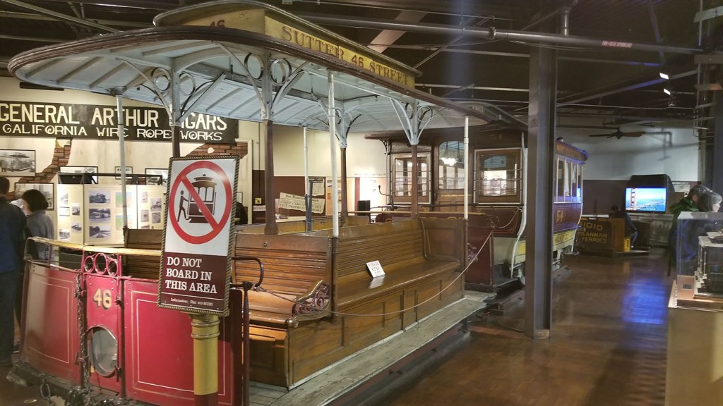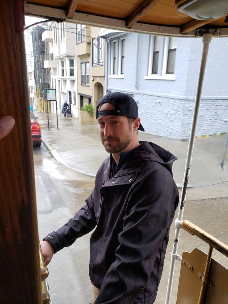 On our way back, it started raining a bit harder so we ducked into the Cable Car Museum to dry off, or just not get any more wet, really. To my surprise, I really enjoyed it. It was great, for a free experience in San Francisco. There were old cable cars on display and I was starting to piece together how these cars worked and what an insane operation it all was. The cables that run under the streets that power the cars were all powered right there. When we left, we were determined to get on a car and experience it first hand. The one we got on was packed and we ended up standing in the back with the brake operator. He was a very kind man that gave us a further education on cable cars. He called them the first Telsa vehicle, meaning that they don’t operate on gas or fuel, but are powered by electricity.