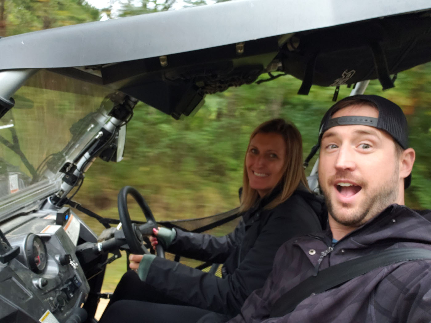 We ended up passing a marina that had gas so we filled up the Ranger and headed back for a quick bite to eat. We grilled some hot dogs and ate some chips and salsa and since we knew where the gas was now, decided to take the RZR out for a spin. The RZR was a bit more spunky and agile than the Ranger. I had been driving most of the time so we switched drivers for a while and I think Jill rather enjoyed herself cruising around the woods in an ATV.