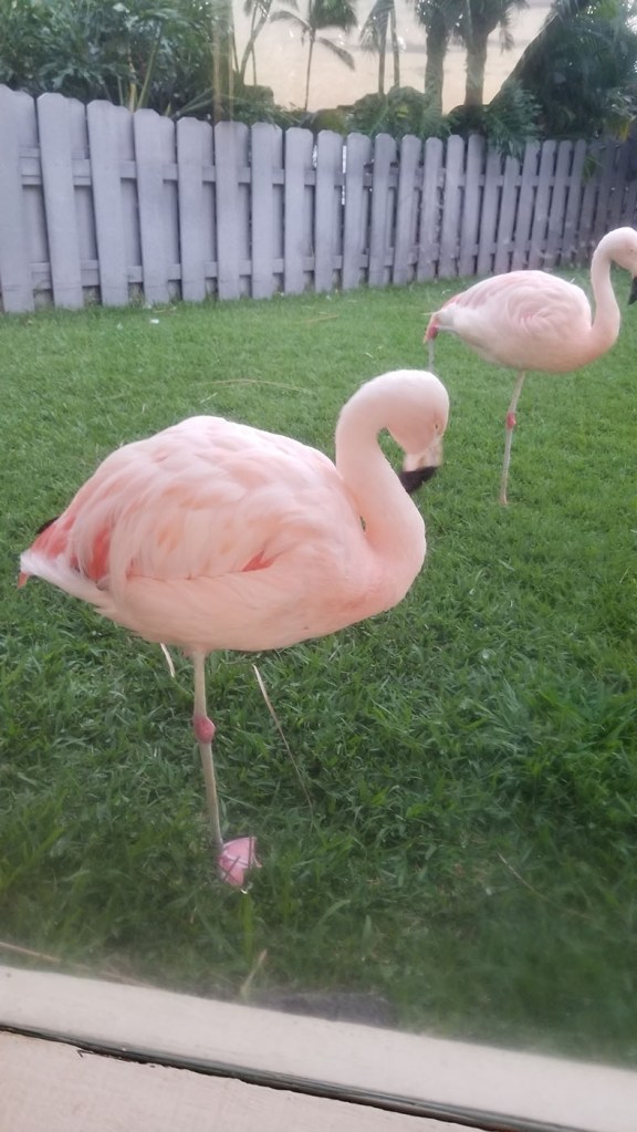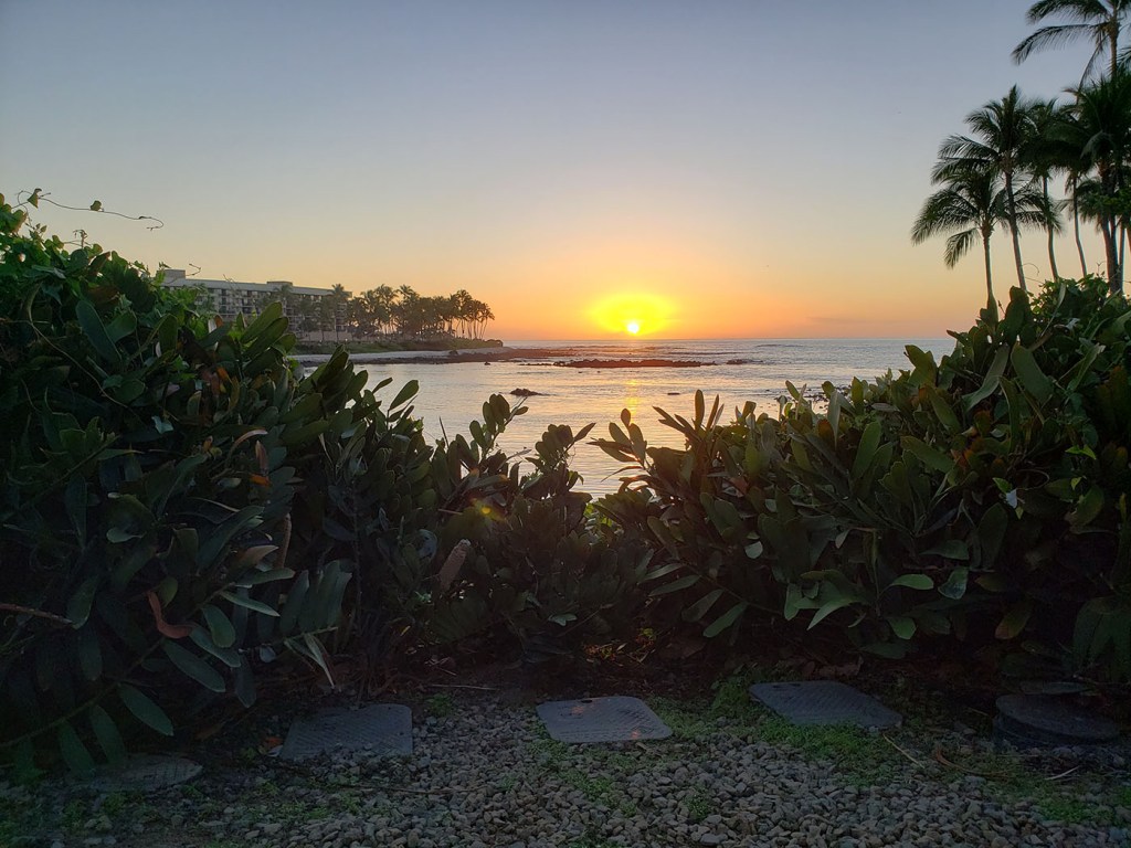 Once we checked into our room on the first night at the resort, we headed down to the Kona Tap Room for a couple of beers with our doTERRA Fam. Jill and I always make an effort to watch the sunset while we are on vacation, so we excused our selves to try to find a spot to catch it before it was gone. Along the way, we found some flamingos behind some glass beside an allusive tortoise on display, also behind a glass window. The area we found to watch the sunset was near a restaurant with seaside seating. We arrived just in time to watch the sun dip below the water.