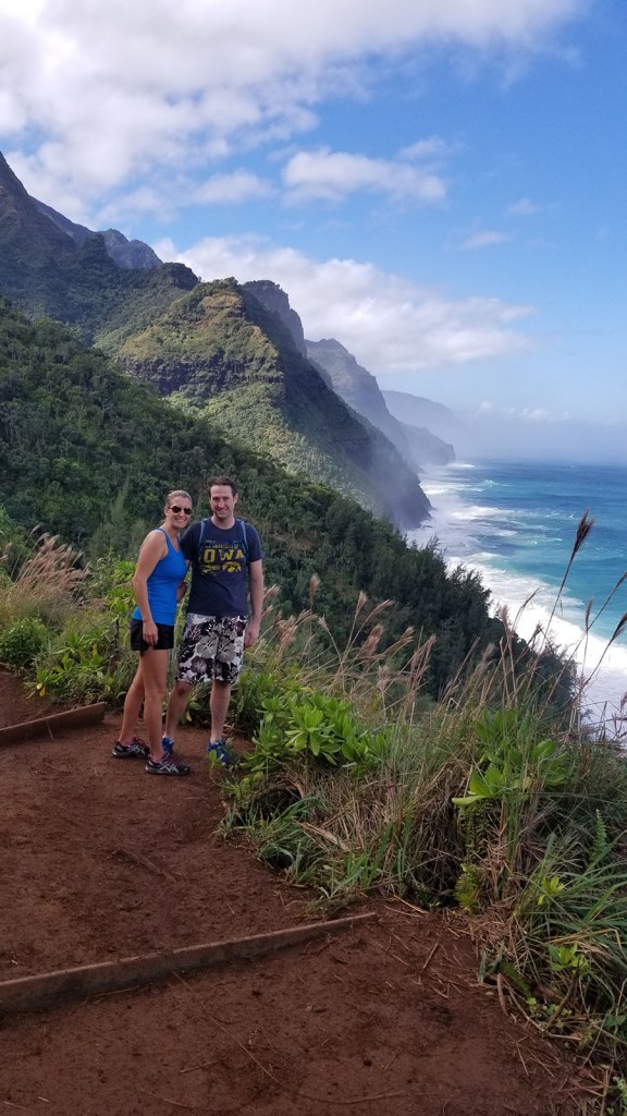 We continued our hike, hitting the Kalalau Trail near Na Pali Coast State Wilderness Park. This was a lot more trail-like. It was muddy, rocky, and steep. You had to really watch your step because in places you are walking along a sheer cliff and with the slippery mud and uneven rocky ground, you’re really just trying to not break an ankle. We saw people with nice white shoes attempting the hike. Let’s just say they weren’t white for long.