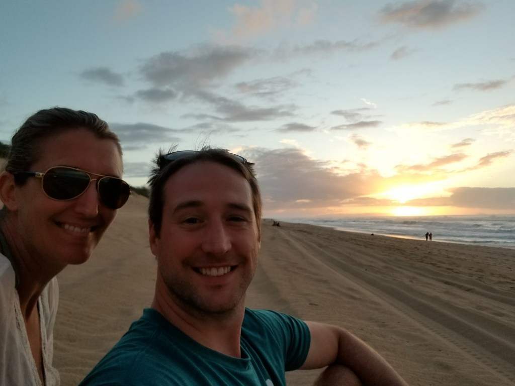 We woke up and took a walk on the beach, looking for seashells and dodging waves as they rolled in. The sun came up over the ocean, and painted the clouds pink and orange. We couldn’t really see the sun, but the effect it had on the clouds as it’s light refracted through them made for a beautiful sunrise.