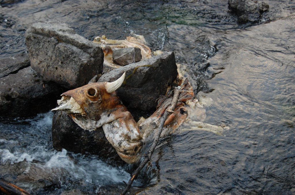 On the way home, we stopped in Hayden Valley again and watched a few buffalo/bison. One decided he wanted to cross the river where there was another large male on the other side. The anticipation mounted as we thought we were going to see a showdown, between these two buffalo, but they didn’t pay much attention to each other. You’ll see in the video that buffalo are not the world’s best swimmers. There wasn’t much of his head above water. It’s not much of a surprise that a bit further up stream, we saw what was left of buffalo carcass in the river.