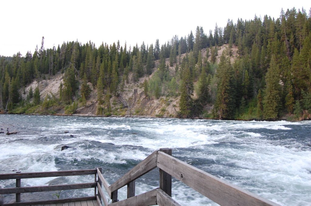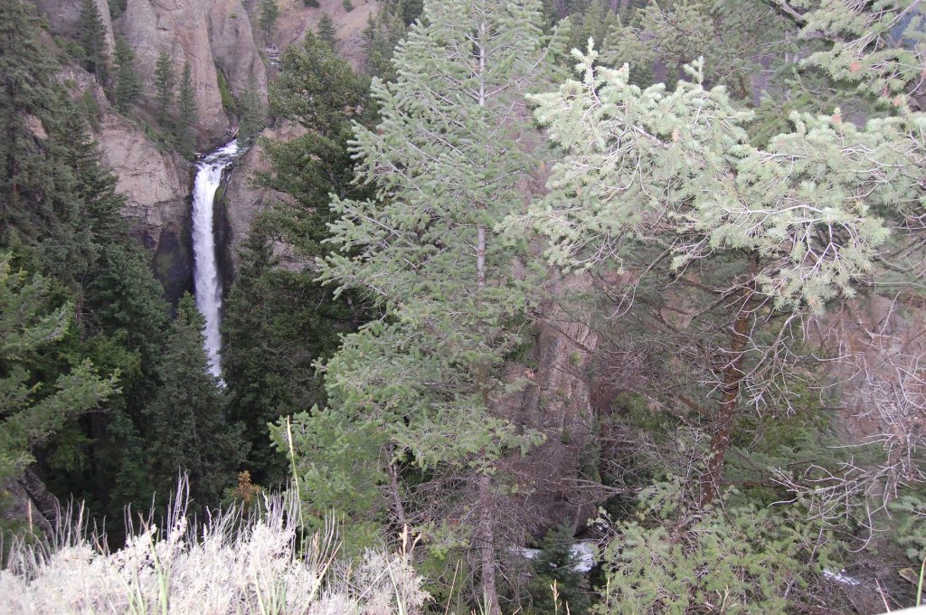 We were lucky enough that the rain let up before we got to our campsite at Bridge Bay. We filled up with water and then set up camp. No electricity at the campsites, but their were flushing toilets not too far, so that was nice. I thought it was interesting that there were signs on the stall doors showing you how to use a toilet. I thought it was pretty self explanatory, but I suppose when you get people from all over the world coming to check out your park, you have to explain that standing on a toilet to poop isn’t how we do it here. Once we got settled in we had some BLT’s and went exploring up the hill to look for some fire wood. We found a bit and then Charlie tripped and ripped her hand open on a log. My heart stopped as I checked out the damage, thinking this could be a vacation ruiner. Once I realized it wasn’t that bad, I breathed a sigh of relief and took her back to camp. Once we got her calmed down, we decided to go for a drive through Hayden Valley on the way to Tower Fall. We just got out and started heading down to the falls overlook and it started to sprinkle. We wanted to go for a little hike, but we ended up just heading back to the gift shop while it poured down rain.