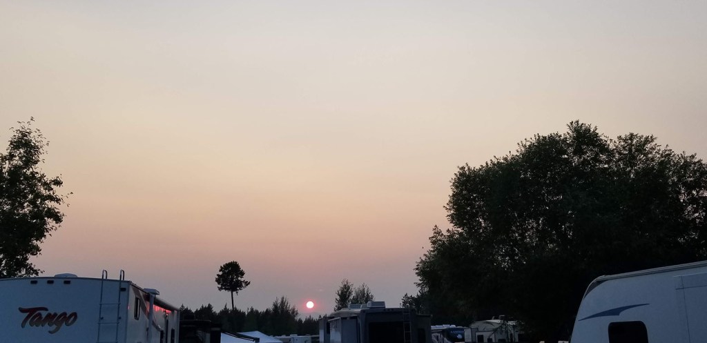 When we got back to camp, it was HOT. It hit 102 degrees that day. Some of us took naps in our air conditioned campers and some of us set off for a dip in the pool. After some walking tacos for dinner, Jill and I went for a walk through the fenced in nature trail within the KOA park. When we popped out of the trail we saw the most beautiful sunset. Especially considering there were no clouds. We snapped a few shots headed back to the campers. There would be no camp fire tonight. We all went to bed fairly early. The heat really took it out of us.