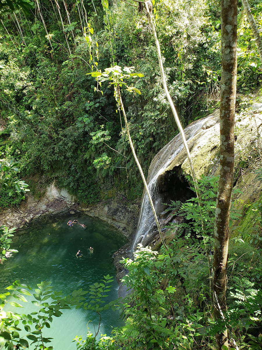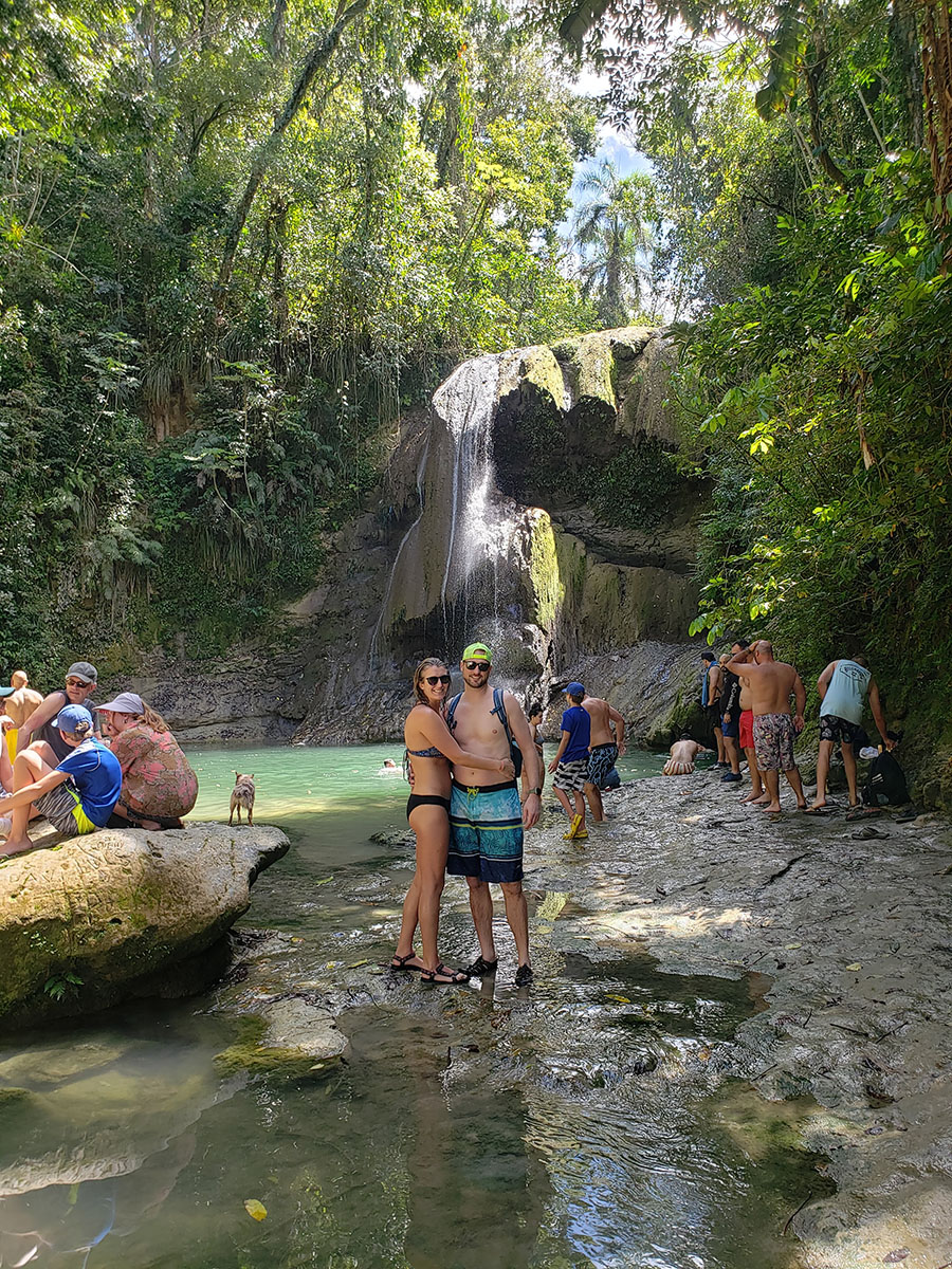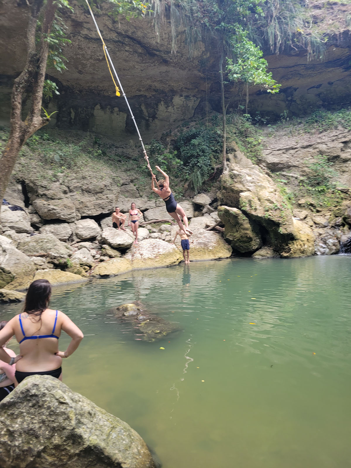We talked for a while with others that were swimming and another tourist from the states commented how weird it was that people didn’t stop at red lights at night. We also learned that police always drive with their lights on in Puerto Rico. Even if they are not pulling someone over. I guess you only stop if they have a siren on. They also told us there was another waterfall a bit further up the trail that had a rope swing.