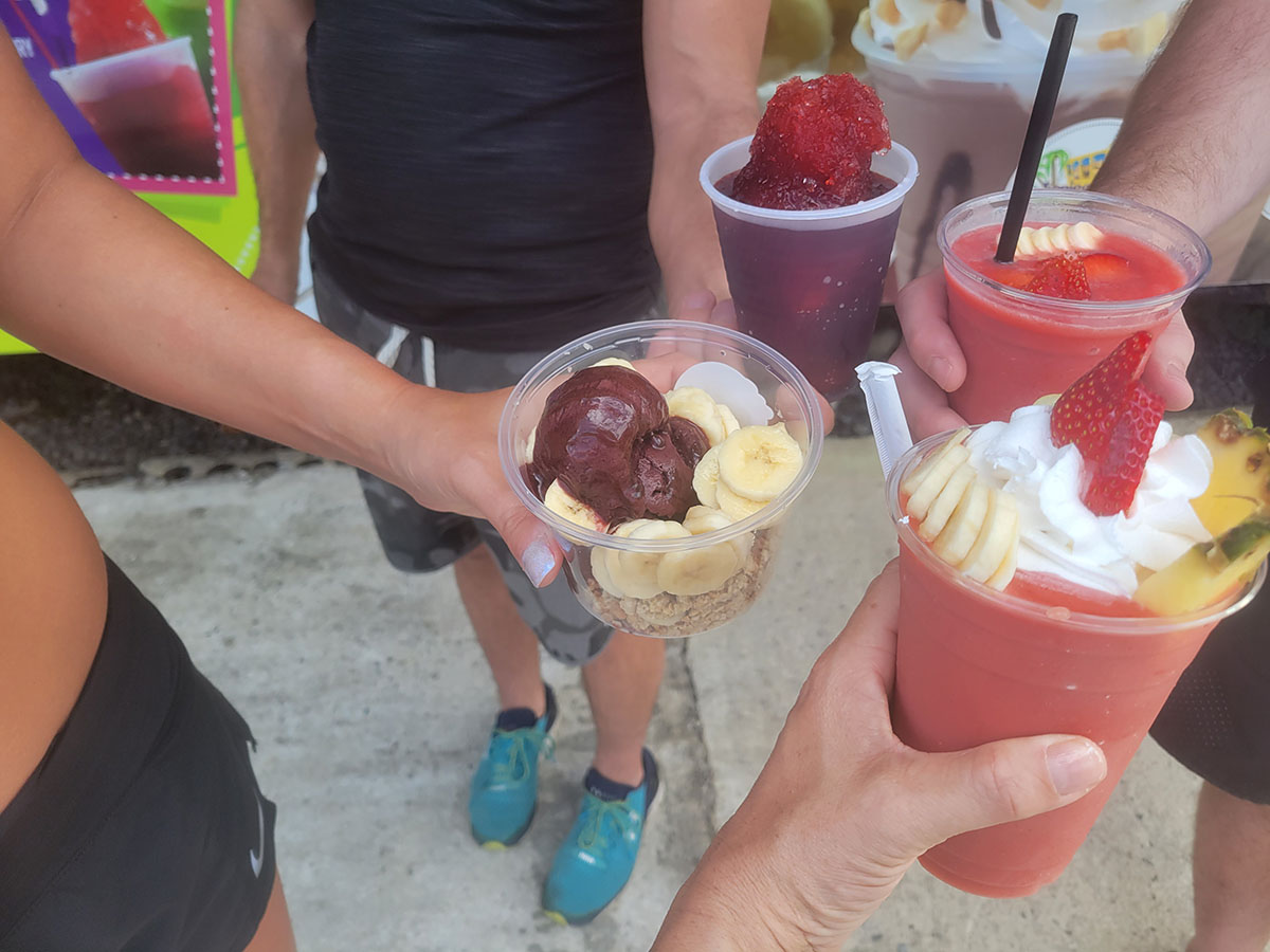 When we had enough of the cool, freshwater we packed up our things and headed back to our vehicle. On the drive home, we agreed that we were getting some of that chicken we smelled on our morning drive. But before we got that far we found a place selling frappes and slushies and thought that would be a good snack to tide us over until we found the chicken trucks. Jason wasn’t impressed with his slushy, but the rest of us liked what we got. Somehow we ended up taking a different route home and missed the chicken trucks. No problem. We had turkey sandwiches at our Airbnb instead.