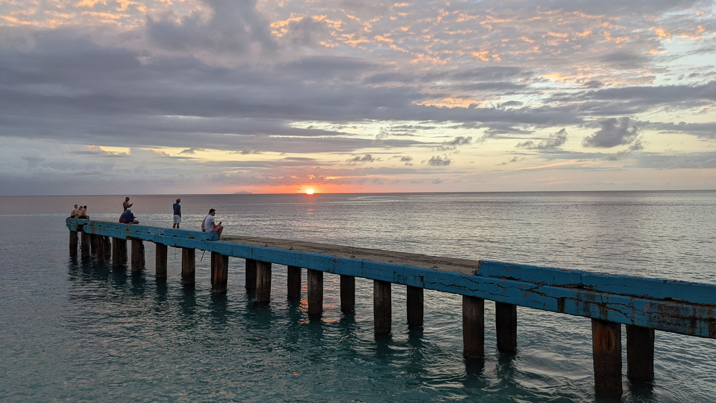 The girls standing on the pier at Crash Boat Beach