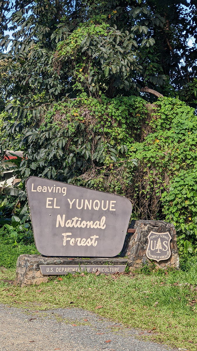 We woke up pretty early so we could make it to the rainforest during our check-in window of 8:00 AM – 11:00 AM. We decided to take the north route again, but we didn’t see as much traffic around San Juan as we did a couple days prior. When we arrived, we wanted to visit the Visitors Center first and plan our hikes, learn about the forest, you know… things you do in a Visitors Center. But upon approaching the gates of the Visitors Center, the ranger let us know there is a fee for entering and it’s actually outside of the National Rainforest, so if we were going to spend more than an hour, we should visit the forest first, then the Visitor Center. Seemed backward, but that is what we did.