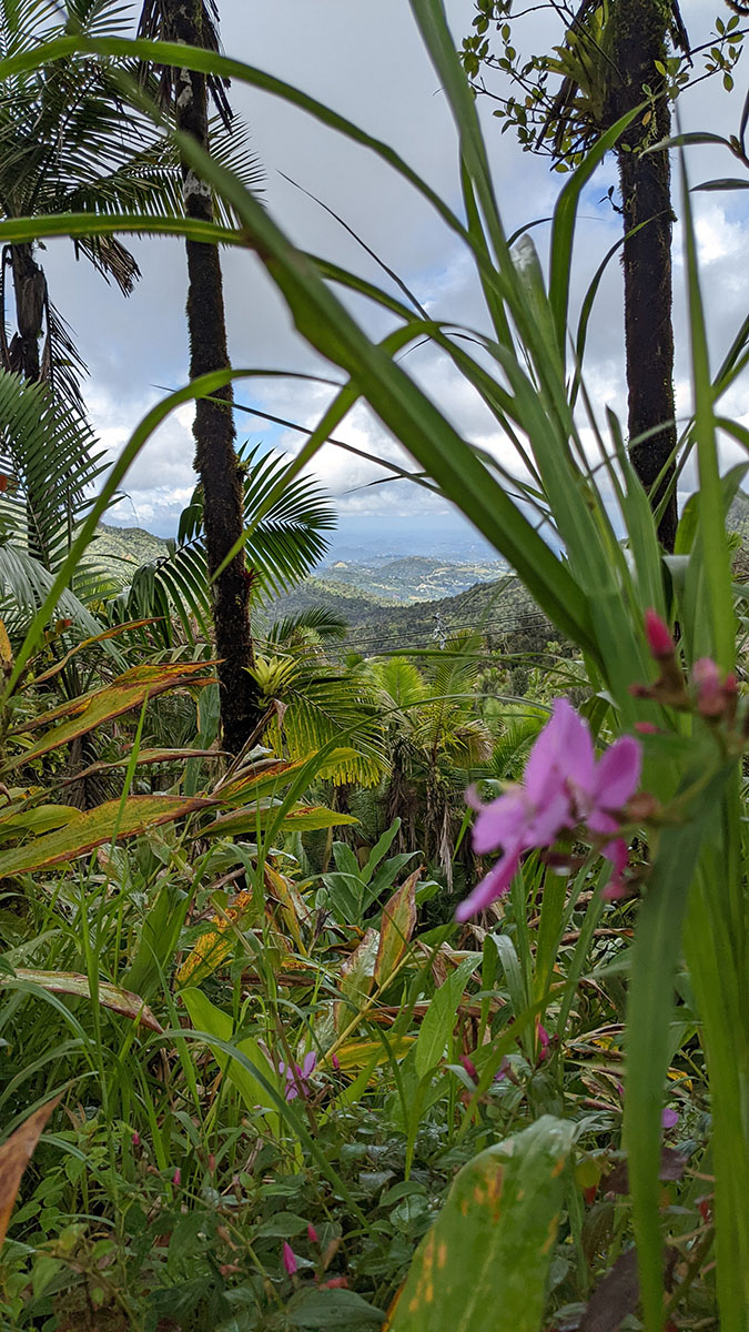 I really enjoyed looking at all the leaves and flowers that we don’t see back in the Midwest. Beautiful bursts of color in a sea of green. We made our way to Mt. Britton Tower for another spectacular view. We were higher up than the last tower and even though we could see a lot of fog and clouds, we had a perfect view for miles. There was another path that we could have taken to go even higher, but we had enough and made our way back down.