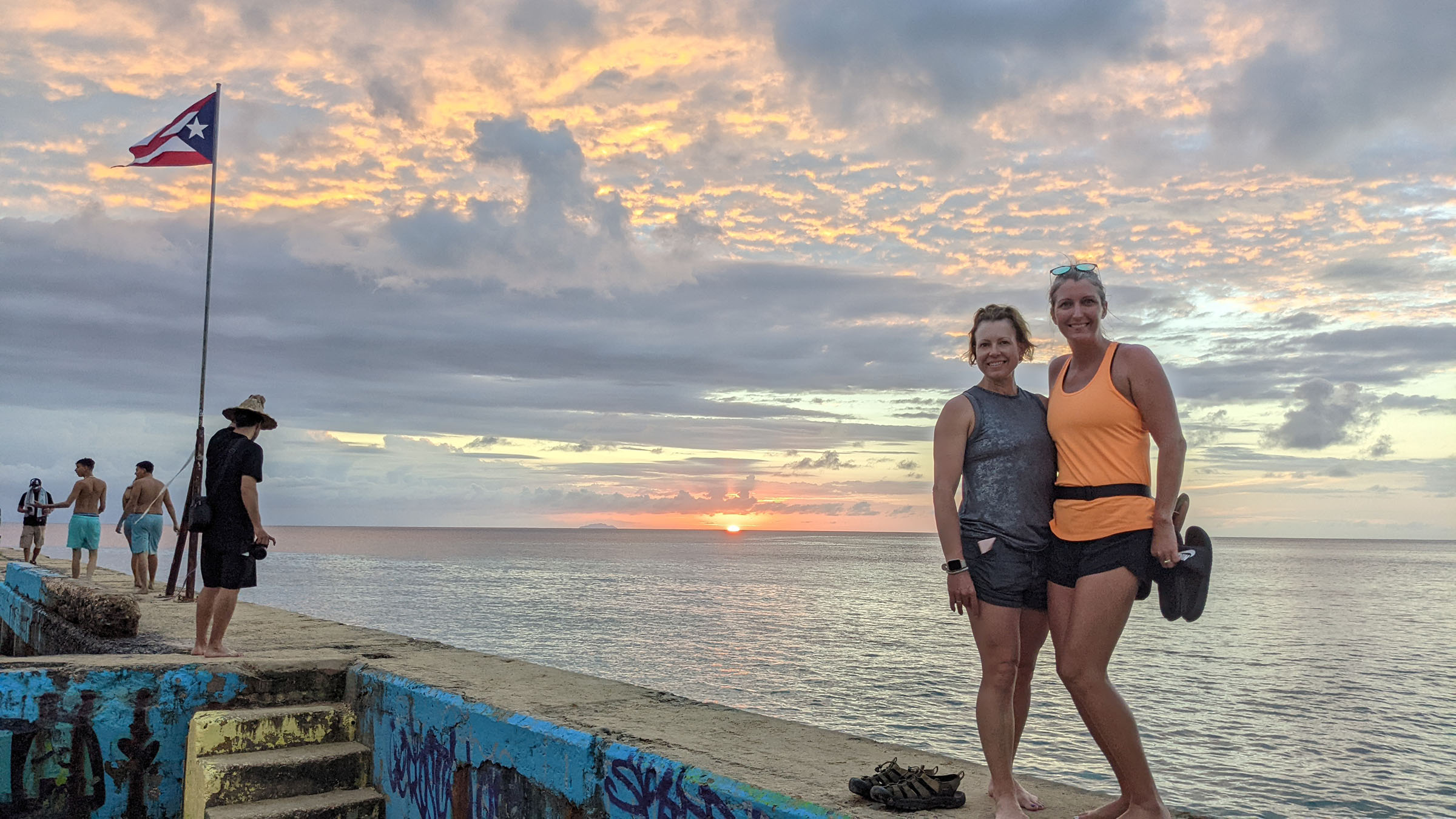 Jill and I try to catch the sunset every night anytime we are on vacation so on our drive back to Rincón we Googled places to eat with a view, but nothing jumped out at us. But I did notice that we would be driving past Crash Boat Beach right about the time the sun was setting and it was only 6 minutes out of the way. Plus, the website I had found said there were food trucks. So we pointed the car towards Crash Boat Beach and made it just as the sky was turning bright orange and pink. We snapped a few pictures and chilled out on the pier before we were reminded that we were hungry by our growling stomachs and went to find the food trucks. We found where they were, but they were all packing up or gone by that time.