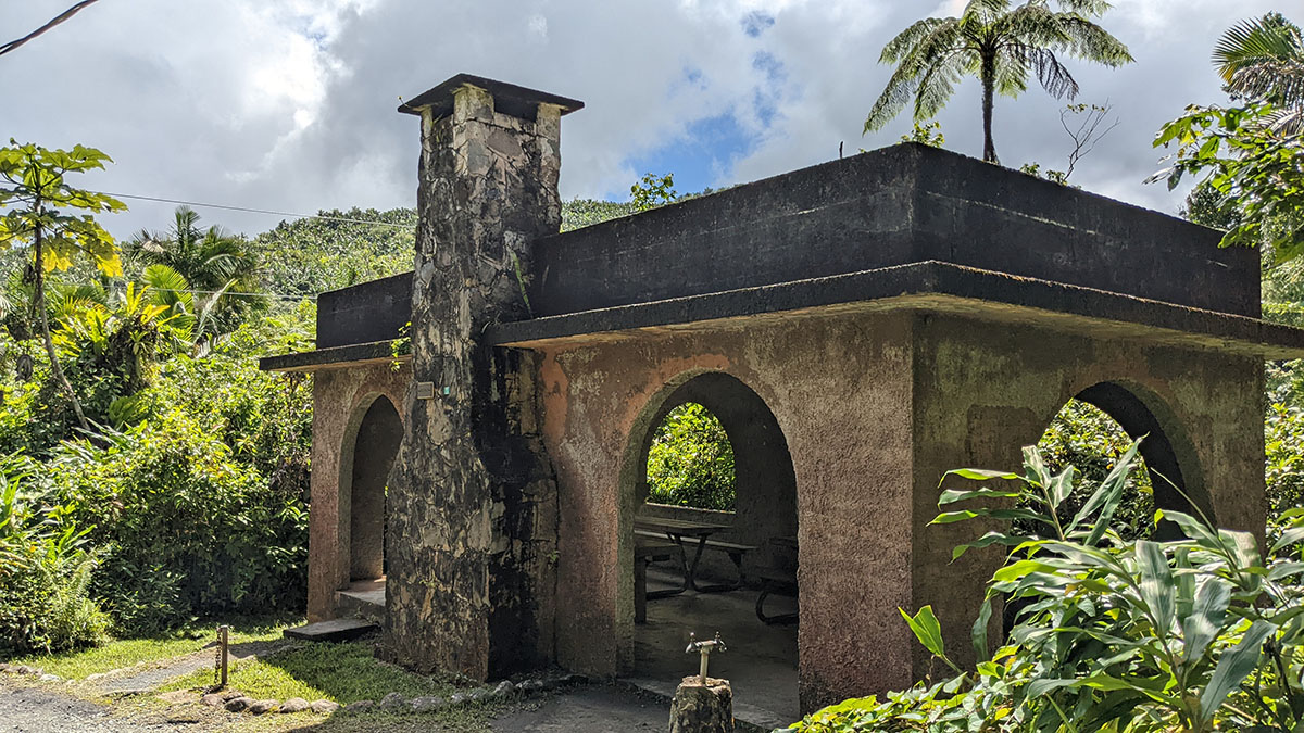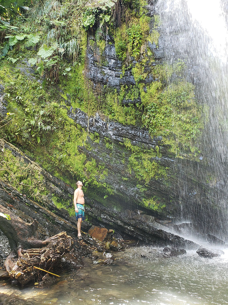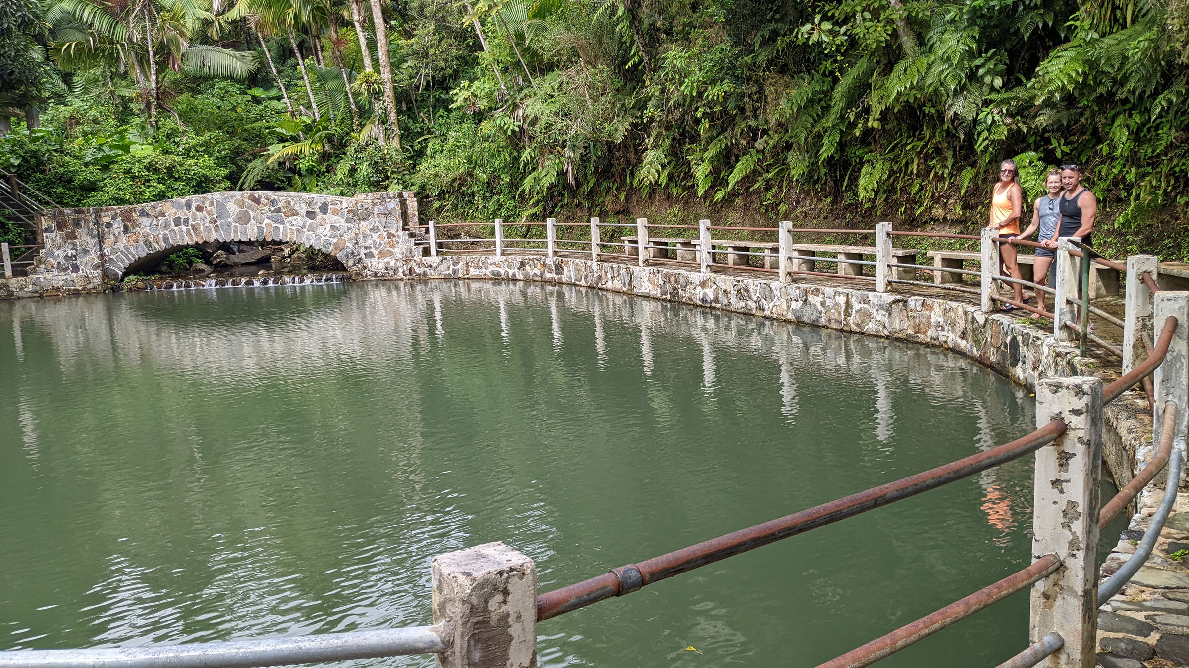 After getting checked in, our first stop was the Yokahu Tower. This cement tower had a spiral staircase leading to the top. The castle-like top revealed immense forests and a beautiful ocean. The view was great, but our bladders were full from the drive, so we continued on to the Baño Grande. Back in the 60’s I bet this spot was an awesome place to take a dip. It’s an 18-foot deep pool with a large bathroom nearby. Both the pool and the bathroom haven’t been in service since the late 60’s but it’s still a nice place to walk around and soak in the beautiful water and vegetation. We had to relieve ourselves in the portapotties near the parking lot.