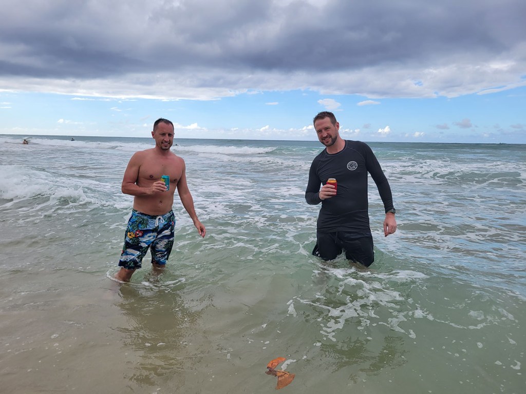 We chilled out on the beach, having drinks and swimming in the waves. We all had a great time, but I hadn’t seen Jill experience that much pure joy in quite a while. She spent what seemed like an hour jumping in the waves, laughing, getting knocked over, and then laughing some more. At one point she attempted to climb up a sandbank and as the sand gave out under her, she fell on her cute little butt. Lisa had her camera and documented the fall as we all laughed hysterically.