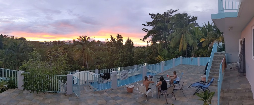The night was capped off with a beautiful sunset during dinner. We ate “brupper” or breakfast for supper: eggs, cheese, sausage, and toast as the sky turned from blue to orange to pink. We didn’t stay up too much later after sunset. We crawled into bed and prepared ourselves for our last full day in Puerto Rico.