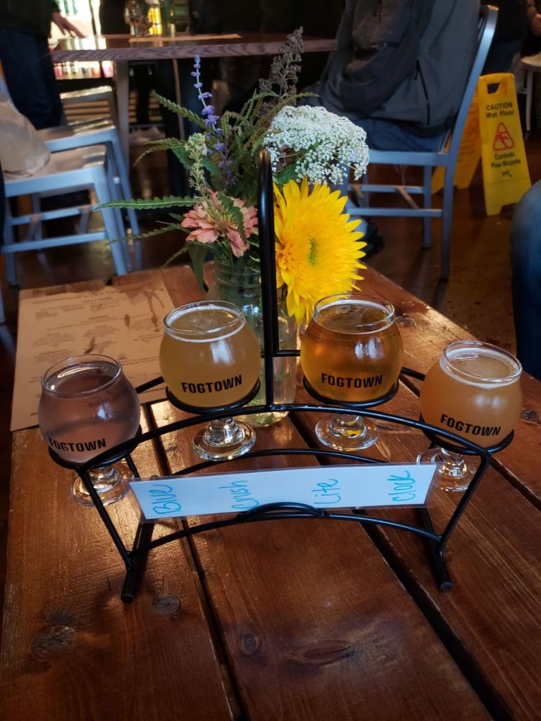 Our next stop was the Thirsty Whale for a drink and some appetizers of fried clams and mozzarella sticks. The fried clams were okay, but they aren’t something I feel I need to integrate into my favorite foods or anything. Fogtown Brewery was across the street and it was still raining, so we stopped over there to sample some beers. The kids got restless so they went shopping for a bit while we finished our drinks and shared a table with a nice couple from New Jersey and chatted about things we liked about Acadia and what things are like in our neck of the U.S.