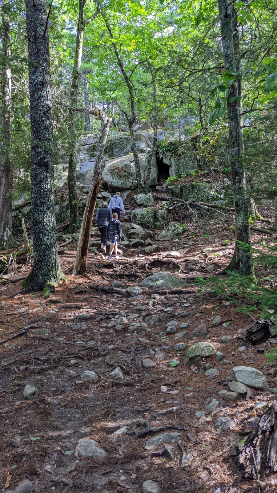 This would be our last full day in Maine. We ate a good breakfast of English muffins and eggs and cereal and English muffins for the kids and headed to Sugar Bakery for some coffee and whoopie pies for dessert later. We were hiking Acadia Mountain that day and had no trouble finding a parking spot at the trailhead. As we headed up the mountain, there was a split in the trail and we decided to go left, hiking clockwise around the loop.