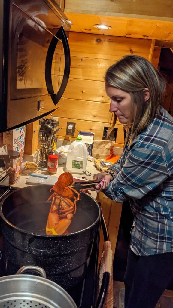 It was the 23rd of September, Jill and my 16th wedding anniversary, and we decided to treat ourselves to lobster for dinner. We stopped at the same place that Jerry and Carol did a few days earlier, Parson’s Lobster. We bought two lobsters for $15 a piece then hit up a grocery store to buy some potatoes, salad, and wine to compliment our meal.