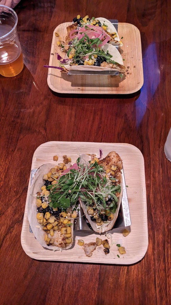 When we started to get hungry we headed out on foot to the southern village of Siesta Key and found the Spearfish Grille. There was a guy using a Big Green Egg in the parking to grill up appetizers lot like oysters, prawns, and crab. It smelled amazing but since we got a table right away, we didn’t partake in any apps. Typically, Jill and I will order two different items off the menu so we can get a taste of the other’s meal and try more than one entrée, but we both really wanted fish tacos so we got the blackened hogfish tacos to avoid any order envy. The food was great and the vibe was perfected by an acoustic duo playing their versions of some classic rock. We stayed and listened to them play for a while before making our way back to our condo.