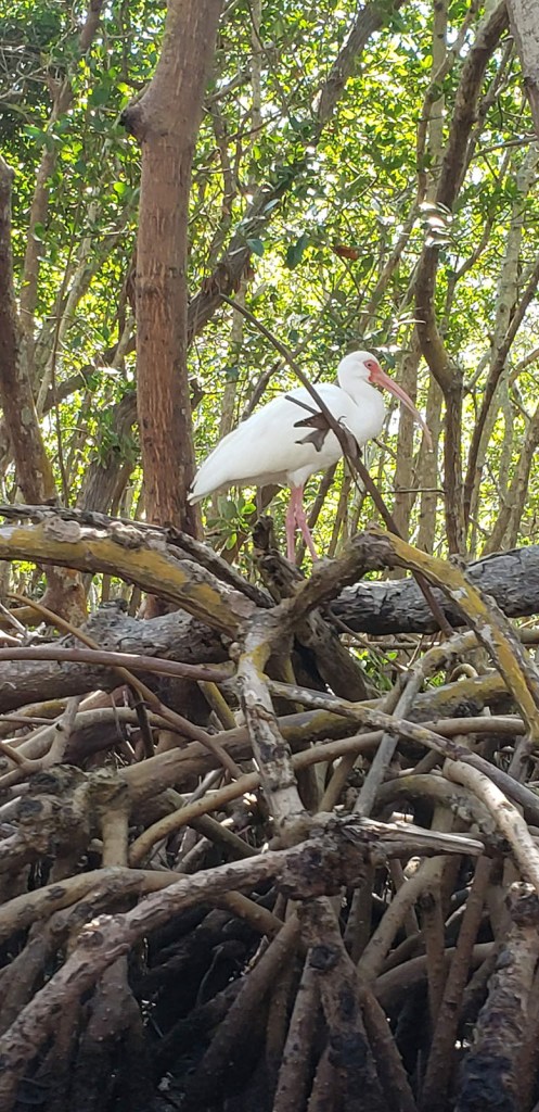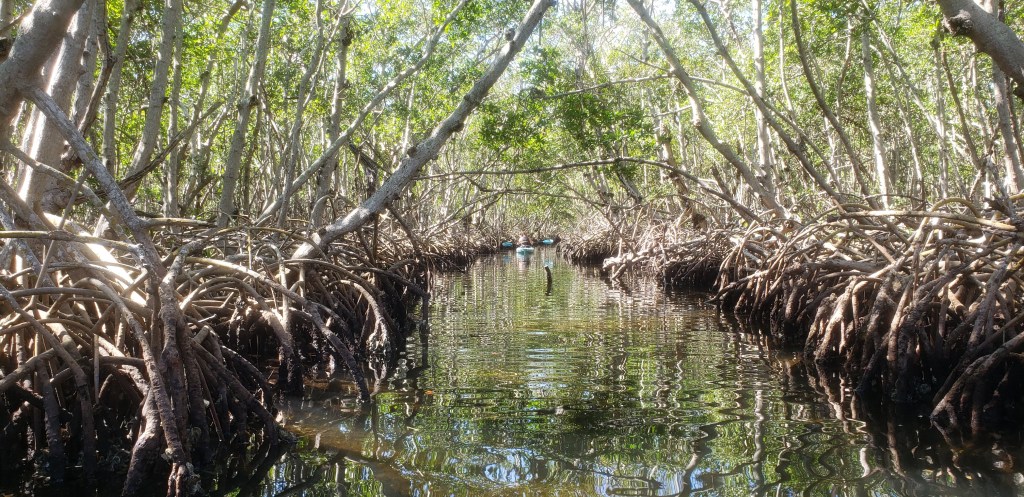 Sea Biscuit informed us that the tide was coming in, so if we tried to traverse the mangrove tunnels right away, we would likely get hung-up and it would be in our best interest to wait a bit to go that way. That was fine by us because cruising around the bay for a bit was an adventure in itself. Every once in a while we would see a bullet fish (a type of tuna) jump out of the water, there were crazy big mansions around the bay with yachts and jet ski’s, there were dolphin and manatee to look out for, and we saw a ship wreck with nothing left but the rusting metal to look at.